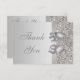 Eleganta specialdesignade silver tack-bröllopskort med vackert tryckt silverpaljettmönster, en söt blank silvertryckt rosett och band och vacker tryckt diamant-bling-juvel. Dessa klassiska, glamorösa och fashionabla inbjudningar är dekorerade på båda sidor. Vackra, chic, trendiga och moderna inbjudningskort. Observera: Alla inbjudningskort på Zazzle har platt tryckta bilder. Text, teckensnitt och teckensnittsfärg kan alla anpassas. Om du behöver hjälp med att anpassa din produkt, vänligen kontakta mig via min butik. Jag hjälper dig gärna. Jag har matchande produkter i min butik.