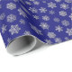 Försilvra metallisk-looken snöflingor mot ett djupt, safirblåttbakgrund
