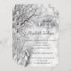 Silver trädgrenar och bröllopsinbjudan med vinglas.