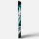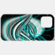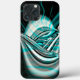 Frimärke i abstraktens digitala design med vågigt kurvor med metallisk underton under högdagrar som liknar cyan grönt rökdrag och mörkens bakgrund.