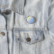 Kromen pläterad metall knäppas för text, logotyp eller avbildar. Blekblå/gult cirkla.