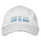 Visa din kärlek att simma med den här slogan och simma med broderad hatt. Läser Simma till Live, live till Simma. Underbar gåva till simmare och simmor.