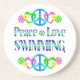 Visa din kärlek för att simma med denna roliga design med fredssymboler, hjärtor, blommor och ord - att simma för fredkärlek. Gör en underbar gåva.
