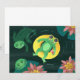 Gör en stänk med denna söta platta kortinbjudan som visar tre glada gröna grodor som njuter av en solig simtur i en damm med näckrosor! En stylish groda flyter i en gul innerslang, har gula solglasögon och smuttar på en sval dryck, redo för fest! Denna roliga och fantasifulla design är perfekt för barnkalas, sommarpoolfester eller grod-tema firanden. Baksidan är tom, så att du har utrymme för DIY-evenemangsinformation.