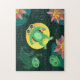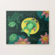 Tre gröntar grodor går för en avslappnande simma i riken framträder vatten av ett sommarpund. Den ljusa gultens innerslang och en grods röda frukt slår dryck, för en stänk av färg till den härliga scenen. Originalillustration av konstnären Noël Snö