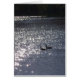 Två gäss som simmar in mot solljus som sparkling av sjön