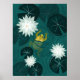Simmande groda i näckrosdamm om natten - Affisch