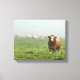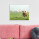 Den här konstduken har dimma morgonbetesvyer med en mogen Simmental-tjur med dam
