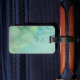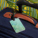 Silhouette av simmande sjöjungfru på blå grönt, fläckig bakgrund. Med texten "Livet är för kort för att inte tro på Sjöjungfruarnas Underbara tillägg till ditt helgdag-bagage.