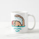 Roligt Swimming-designen har friestyle simmare som tar en andedräkt av luft när de simmor genom blått vatten.