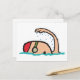Roligt Swimming-designen simmar och tar en andedräkt av luft när de simmor genom blått vatten.
