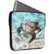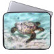 En grön havssköldpadda simmar i grunt vatten i denna digitala bläckmålning.
