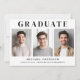 Ett enkelt meddelande från studenten med tre foton över mitten, "Student" i elegant-typografi och stadiets namn, skola- och klassår i modern typografi.