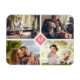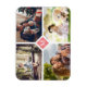 Skapa din egen fotokollage magnet. Utformning med fyra av dina familjefotografier och en första brev på korallbakgrund. Perfekt som gåva eller keepsaké.
