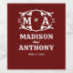 This elegant and classic custom label design offers you an elegant atmosphere for your wedding or engagement celebration. A simple open laurel wreath of outlined leaves surrounds the bride and groom's initial monogram. The elegant yet simple text template is ready to personalize with the bride and groom's names and wedding date. This design is available in a variety of popular color options.