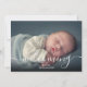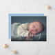 Välkomsthälsning av skript med blått foto från pojke med elegant-skriptmeddelanden. Dessa söta, moderna födelseannonskort är ett perfekt sätt att informera alla om dina underbara nyheter. Anpassa framsidan med fotot från baby och namn. Det omvända är ett vackert manusmeddelande tillsammans med ditt personliga tack och födelsestatus. Designad av Thisisnotme©