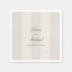 Simple, modern, neutral beach sand beige and ivory cabana stripes wedding napkin, designed for couples who wish to blend casual charm with timeless elegance. Featuring soft vertical stripes in a 2-tone neutral beige color palette and classic typography, this design perfectly complements beach weddings, barn venues, indoor and outdoor celebrations. The clean layout and classic script evoke a sense of effortless sophistication—ideal for today’s stylish brides.