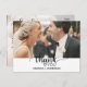 Det här enkla svarta kalligraffototacket du vykort är perfekt för ett orustiskt bröllop. Anpassa kortets framsida med ett foto av bröllopsdagen och namnen. Anpassa baksidan med ett andra foto från bröllop och ett tackmeddelande.
