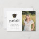 Den här inbjudan från studenten innehåller ett enkelt svart-vitt tema med en sockel och ett handtag. Lägg till ett foto och anpassa texten på framsidan och baksidan om du vill ha all information om studentfesten.