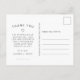Tack till gästerna i bröllop i stil med det här anpassningsbarna i elegant tack vare vykortet. Den här typografidesignmallen har bild på framsidan med ett överlägg och ord "Tack" i svart skript och ditt namn och bröllop datum för att anpassa sig. Baksidan av vykortet har ett anpassningsbar-meddelande och namnteckning på en vit bakgrund. Designad av konstnären Susan Coffey.