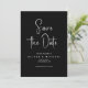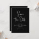 Looking for a modern and simple way to announce your big day? Our minimalist Save the Date invitation is perfect for introducing your guests to your wedding day. Featuring script and classic white typography on a black background that can be personalized, the backside also includes a QR code for guests to scan and visit your website for more details about the event. This stylish and practical design is sure to impress and let your loved ones know you're getting married.