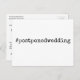 Simple Black & White Hashtag Postponed Bröllop Vykort