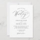 Inbjudan dina bröllop-gäster i stil med den här anpassningsbarna, svartvit minimalistisk bröllopsinbjudan med en enkel vit bakgrund för elegantens svarta skripttypografi så att du kan anpassa dig med dina bröllop-uppgifter. Bästa önskemål för bröllop och giftermål! Designad av Susan Coffey.