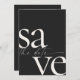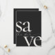 Dessa 5 x 7-tumsdisketter har en minimalistisk design i eggshell-vit och grått-brev på en svart bakgrund med platshållare på baksidan för det förlovade paret namn, bröllop-datum, platsinformation och ditt favoritfoto!