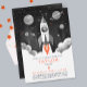 Blast off into birthday fun with this modern astronaut birthday invitation—perfect for a space-themed celebration! Featuring orange red and white typography, this design showcases a rocket launch on a magical moon mission, personalized with your child’s photo. Set against a black and white cosmic background filled with accents of red for some of the stars , it creates a charming retro outer space atmosphere.