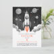 Simple Black White Rocket Ship Moon Galaxy Photo Inbjudningar