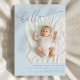 Simple Blue Script Cute Hello Baby Two Photo Birth Meddelande
