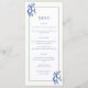Elegant Hand Drawn Blue Lemons Wedding Menus with lemon stripes.