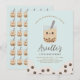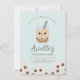 Minimalistiskt mjölk-te, boba/bubble, kallades till personligens födelsedag, med söt kawaii bubble-mjölk-telippbild, enkel modern typografi och pastellblå bakgrund. Kommer med fram- och bakåtdesign. Anpassa med information om namn, ålder och party. Perfekt för enmajs och boba, temat party.