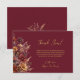 This simple card is a wonderful way to thank your wedding guests for celebrating your special day with you. The simple burgundy colored design features a spray of richly colored wildflowers along the left hand side, with the text on the right. The colors include burgundy, gold, sienna, and taupe, with modern script lettering for the title and signature. Perfect for a fall or autumn wedding.