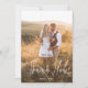 Det här enkla och boho bröllop-tacket som du har på bröllop-fotot på framsidan, med elegant modern handskriven manustypografi och ett litet hand plockade-hjärta. Kortets baksida är svart och vit och har plats för ett personligt meddelande, tillsammans med ett annat foto från bröllop.