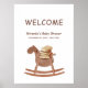 Simple Boho a new chapter begins, book baby shower theme, cute gender neutral baby shower, design feature neutral brown watercolor book and Rocking horse on white background. You can personalize your own text and color via "personalize this design".