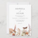 En enkel bröllopsinbjudan med en elegant minimalistisk stil med botaniskt boho-blommigt.