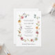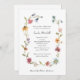 Den här enkla och boho-inbjudan till babyduschen innehåller en färgstark blomkrans med en blandning av blommor och löv av rosa, blått, orange, lila och grönt. Bilden ramar din svarta, klassiska text med accenter för det moderna, roliga skriptet, allt på vit bakgrund.
