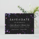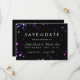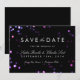 Sparka ljus i halvgenomskinlig rosa, lila och blått i bakgrunden till den här mörka glamoreringen spara datumet, med vanligt chic, vitt skript och sans serif-bokstäver. Ändra texten till din egen och klicka på "Anpassa" om du vill ändra typsnitt och färg.