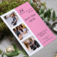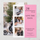 Enkel inbjudan till foto Bild i Bröllop spara datum innehåller fyra av dina favoritfoton, tre på framsidan och en på baksidan med texten "Spara datumet" i elegant, modern skripttypografi på en nejlikans rosa och vit bakgrund. Enkel, modern och elegant för bröllopsdagen firande. Designad av ©Evco Studio www.zazzle.com/store/evcostudio