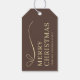 Simple brown modern Merry Christmas heart ornament custom family name gift tag