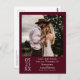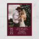 Det här burgundiska eller vin röda vykortet för färgad är perfekten för att informera dina vänner och din familj om ditt kommande bröllop. Med en enkel minimalistisk design med sin konst, moderna och elegant, inklusive ditt foto med vit text som innehåller all viktig information.