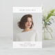 Announce your graduate’s achievement with this elegant and minimalist graduation announcement. Featuring a modern photo layout, clean typography, and timeless black-and-white styling, this design is perfect for graduates celebrating the Class of 2026. Fully customizable with your own photo and details. On the back, custom text either for your graduation party or more information. Or delete the text and add another photo.