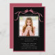 Invite friends and family to celebrate the graduate with this elegant invitation, featuring a deep blush ribbon bow with a photo.