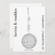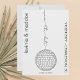 En enkel disco boll bröllop spara datum. Minimalt handritat utseende med kursiv "spara datumet"-text som gör att disco boll avbryts. En uppdaterad beröring på 70-talets Groovy stil och unik med dess manustypografi disco boll. Retro vintage 1970-talets diskotema men modernt. Ditt namn, bröllop-datum och din position är framträdande på kortets framsida. På baksidan finns utrymme för ytterligare ett meddelande och finns en QR-kod för webbplatsen bröllop.