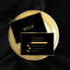 Svarskortets enkelhet gör det vackert och elegant. Utformningen har ett tunt och minimalistiskt, ojämlikt guldfärgat kant med gyllene typografi för anpassadets OSA och ytterligare information om svarskort. Elegant och sofistikerad svart bakgrund.