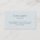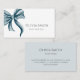 Simple and elegant business card with a blue bow on one side and modern typography. Illustrated and designed by Patricia Alvarez.