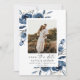 Simple Elegant Blue Floral Script & Photo Wedding Spara Datumet