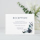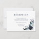 Ett marinblått, blomstergästfritt mottagningskort där du kan ge detaljer om aktiviteter efter bröllpet.