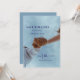 A simple, modern wedding invitation card to save the date with a picture that expresses your love and connection to each other and elegant fonts.